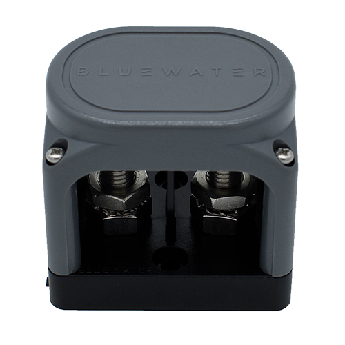 Μπάρες διακλάδωσης βαρέως τύπου της Αμερικάνικης εταιρείας BLUEWATER, διαθέτουν δύο ακροδέκτες  με αφαιρούμενο πλαστικό διαχωριστικό, το οποίο επιτρέπει την ηλεκτρική απομόνωση των δύο πόλων. Η απομάκρυνση του μεσαίου πλαστικού διαχωριστικού δίνει τη δυνατότητα σύνδεσης των δύο ακροδεκτών μέσω συμπαγούς συνδέσμου από καθαρό χαλκό, μετατρέποντάς την σε μία ενιαία γραμμή διανομής ισχύος. Πρόκειται για ιδανική λύση για συνδέσεις υψηλής έντασης, όπως η σύνδεση του κινητήρα με το ηλεκτρικό σύστημα του σκάφους, αλλά και γενικότερα σε απαιτητικές θαλάσσιες ή βιομηχανικές εφαρμογές.