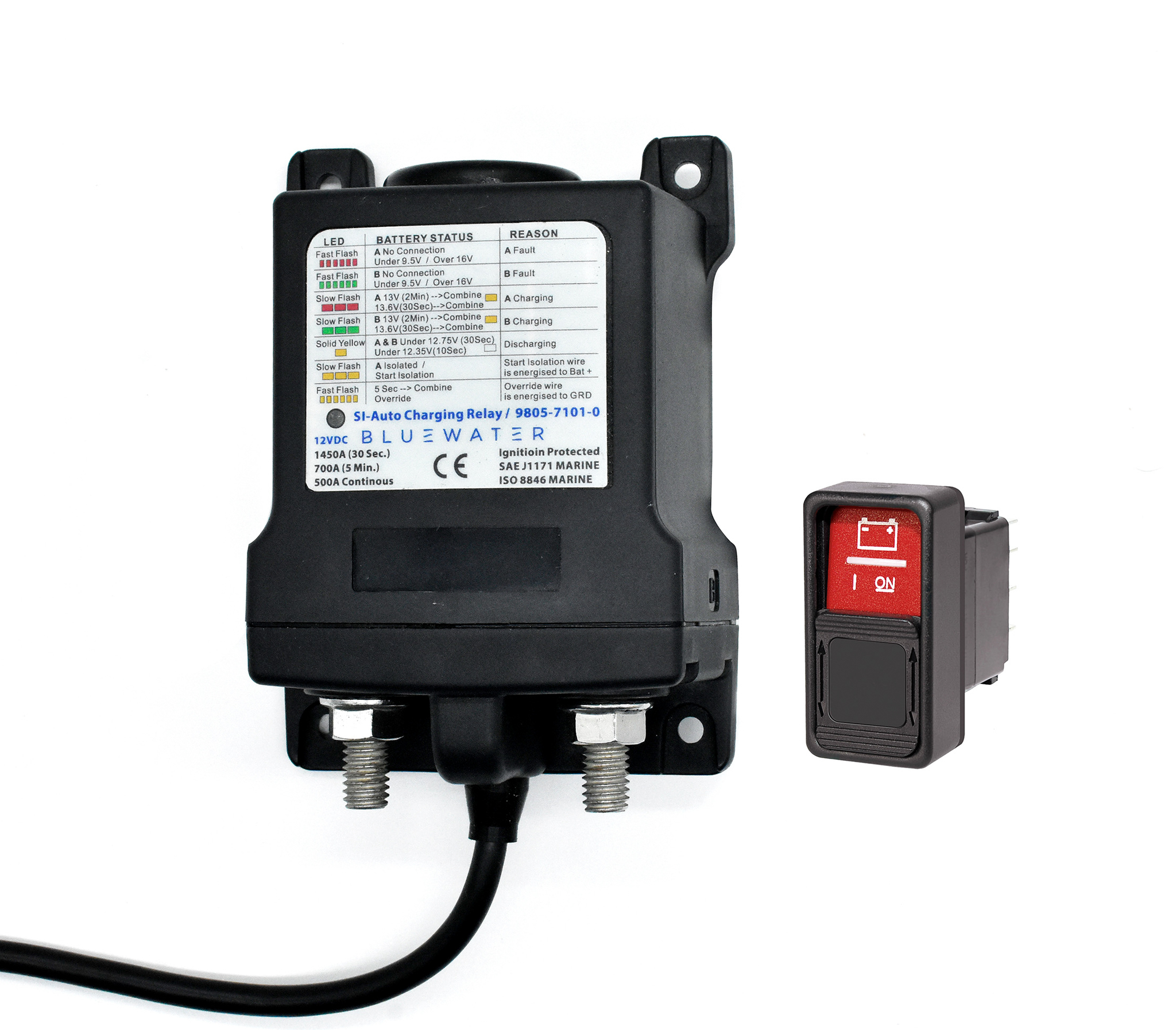 Το ML-ACR 500Α (Magnetic Latching Automatic Charging Relay) της Αμερικάνικης εταιρείας BLUEWATER, είναι ένα εξελιγμένο και υψηλής αξιοπιστίας μαγνητικό αυτοσυγκρατούμενο ρελέ αυτόματης φόρτισης 12V, σχεδιασμένο ειδικά για σκάφη και συστήματα μπαταριών υψηλής απόδοσης. Με χειροκίνητο έλεγχο, διπλή ανίχνευση τάσης, και λειτουργία παράκαμψης για έκτακτη ανάγκη, προσφέρει πλήρη και ασφαλή διαχείριση της φόρτισης σε διπλές συστοιχίες μπαταριών. Η συσκευή συνδυάζει αυτόματα τις μπαταρίες κατά τη φόρτιση και τις απομονώνει όταν δεν υπάρχει φόρτιση, ή κατά την εκκίνηση του κινητήρα, εξασφαλίζοντας προστασία των ηλεκτρονικών και μέγιστη αξιοποίηση του δυναμό. Επιπλέον, δίνει τη δυνατότητα παραλληλισμού για εκκίνηση έκτακτης ανάγκης, επιτρέποντας άμεση υποστήριξη της μπαταρίας κινητήρα από τη βοηθητική(Service).