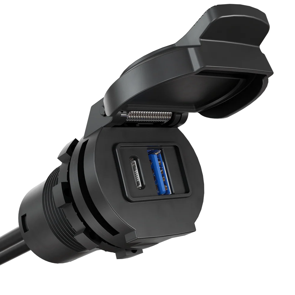 Αδιάβροχη συσκευή φόρτισης USB-A/C με Dual Port και Data Relocator. Η έξυπνη αδιάβροχη διπλή πρίζα φόρτισης είναι μια premium πρίζα φόρτισης USB TYPE-A & TYPE-C για χρήση σε σκάφη, yachts, RIBs και εξωτερικούς χώρους, σχεδιασμένη για απαιτητικές εφαρμογές όπου η αξιοπιστία και η ασφάλεια είναι κρίσιμες. Συνδυάζει στιβαρή κατασκευή, υψηλή απόδοση και προηγμένη τεχνολογία φόρτισης, προσφέροντας την ιδανική λύση για κάθε marine ή outdoor περιβάλλον. Με δύο εξόδους USB (USB-C PD 30W + USB-A 6W), επιτρέπει τη γρήγορη και ασφαλή φόρτιση δύο συσκευών ταυτόχρονα, ενώ η δυνατότητα Optional Data Port Relocator δίνει τη δυνατότητα σύνδεσης σε συσκευές πλοήγησης ή άλλες USB συσκευές χωρίς να απορροφάτε ενέργεια από αυτά, χάρη στο Smart Power Injection. Η κατασκευή της είναι IPX7 waterproof, ανθεκτική σε κραδασμούς, σκόνη και υγρασία, με καπάκι ελατηρίου, υδατοστεγή φλάντζα και μαγνητικό κλείστρο για πλήρη προστασία των θυρών USB.