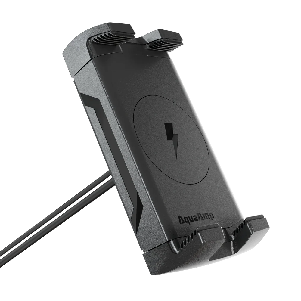 Κάθετος αδιάβροχος ασύρματος φορτιστής marine grade  με μηχανικές δαγκάνες, ισχυρή μαγνητική ευθυγράμμιση και αδιάβροχη προστασία IPX7. Είναι ειδικά σχεδιασμένος για θαλάσσιες εφαρμογές, σκάφη, yacht, RIB, αλλά και απαιτητικές outdoor εγκαταστάσεις.