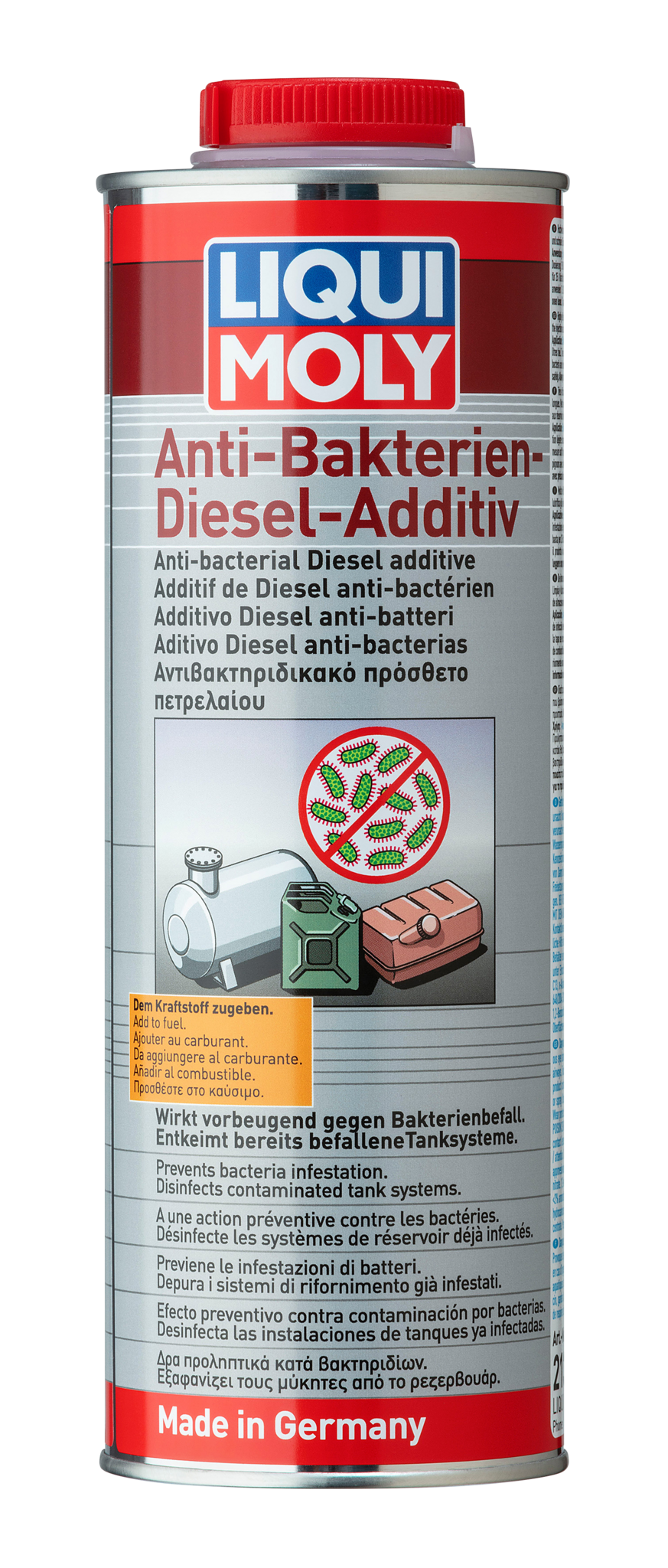 Υψηλής αποτελεσματικότητας βιοκτόνο με ευρύ φάσμα δράσης για βακτηρίδια, ζύμες και μύκητες μούχλας. Κατάλληλο για ασφαλή μακρόχρονη συντήρηση. Φροντίζει και προστατεύει χάρη στο καθαριστικό και στην αντιδιαβρωτική προστασία ολόκληρο το σύστημα τροφοδοσίας. Κατάλληλο για όλους τους πετρελαιοκινητήρες με και χωρίς φίλτρο σωματιδίων πετρελαίου – προληπτικά ή για αντιμετώπιση προβλημάτων. Ελεγμένο σε υπερτροφοδοτούμενους κινητήρες. Για απευθείας προσθήκη στο ρεζερβουάρ καυσίμου. Απόλυτα συμβατό με όλα τα συμβατικά καύσιμα ντίζελ και βιοντίζελ.